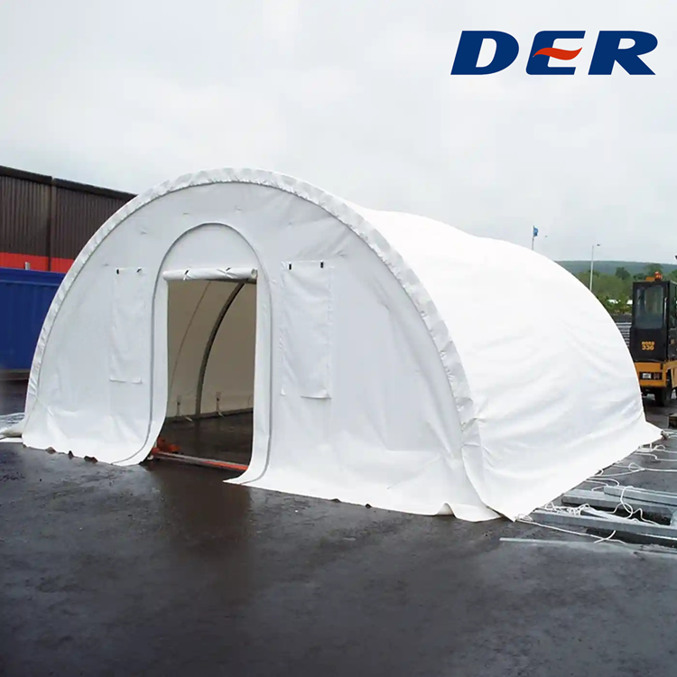 These shelters are an upgrade or alternative to disaster relief tents. They are primarily covered with PVC-coated canvas and may feature a more robust frame (such as thicker steel pipe or the PVC itself).